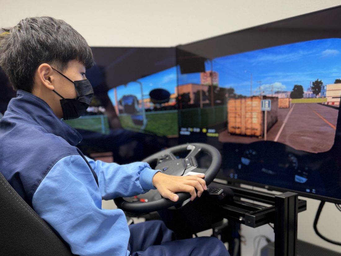 また、今年導入した運転シミュレーターを使用し、大型トラックの運転体験も実施。